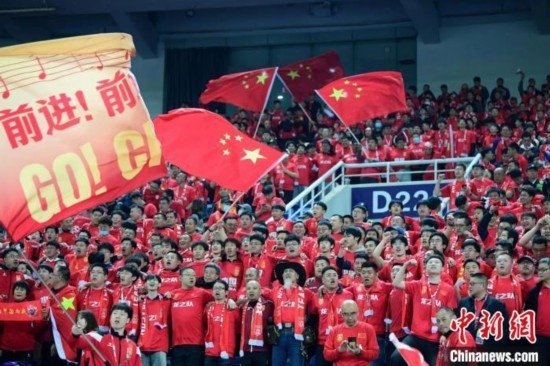 3月26日晚,在天津舉行的2026年國際足聯(lián)世界杯亞洲區(qū)預(yù)選賽36強(qiáng)賽C組比賽中,中國隊主場4比1戰(zhàn)勝新加坡隊。圖為球迷為中國隊加油助威。佟郁 攝
