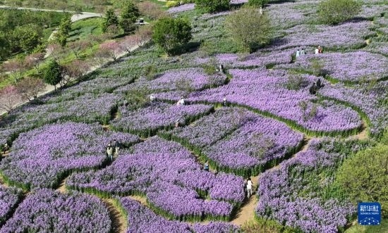 5月11日,游客在大連英歌石植物園游覽(無(wú)人機(jī)照片)。