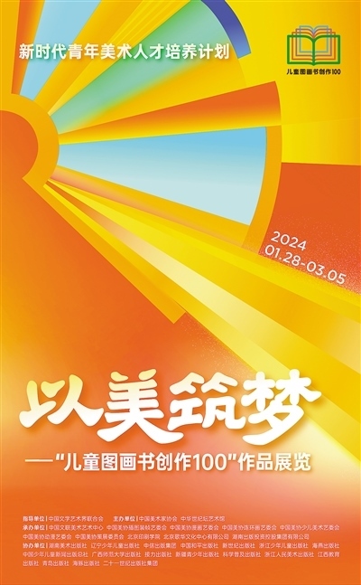 “以美筑夢(mèng)——‘兒童圖畫(huà)書(shū)創(chuàng)作一百’作品展覽”海報(bào)。