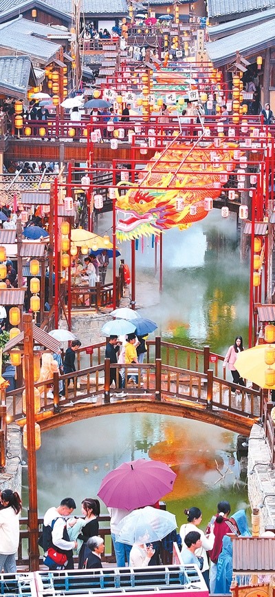 龍門浩老街上,幾名外地游客沿著青石臺(tái)階漫步至老街最高點(diǎn)——攬?jiān)屡_(tái),遠(yuǎn)眺渝中半島。這條位于重慶市南岸區(qū)南濱路中段的老街,面朝長(zhǎng)江,背依南山,開埠文化、巴渝文化等文化底蘊(yùn)深厚。近年來,經(jīng)過保護(hù)與修繕,這里不僅恢復(fù)了歷史風(fēng)貌,還增添了現(xiàn)代時(shí)尚氣息。古色古香的街道兩旁,新潮的商鋪、餐館和咖啡館為市民游客休閑購(gòu)物提供便利和全新體驗(yàn)?!案惺軙r(shí)光交錯(cuò)的美妙”,成為這里的一大魅力。數(shù)據(jù)顯示,自發(fā)展全域旅游以來,龍門浩老街所在的龍門浩街道已接待游客近4000萬人次,實(shí)現(xiàn)旅游收入276.8億元,龍門浩老街還成功創(chuàng)建第二批國(guó)家級(jí)夜間文旅消費(fèi)聚集區(qū)。