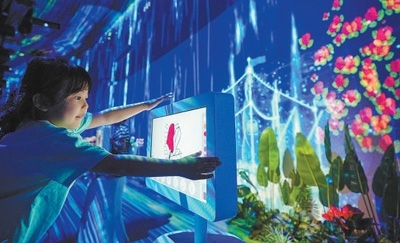 海南三亞的一處體驗館內(nèi),小朋友在電腦屏幕上畫出“心目中的三角梅”。