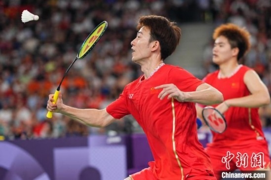 資料圖:當(dāng)?shù)貢r(shí)間8月4日,在巴黎奧運(yùn)會(huì)羽毛球男子雙打決賽中,中國組合梁偉鏗/王昶奪得銀牌。圖為梁偉鏗/王昶(前)在比賽中。 記者 趙文宇 攝
