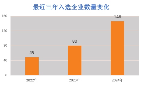 據(jù)了解,入選企業(yè)評選標(biāo)準(zhǔn)非常嚴(yán)格,需同時(shí)滿足專業(yè)化、精細(xì)化、特色化、創(chuàng)新能力、產(chǎn)業(yè)鏈配套等多個指標(biāo)。盡管如此,2024年名單中的企業(yè)與2022年49家和2023年80家相比,大幅增加到146家。