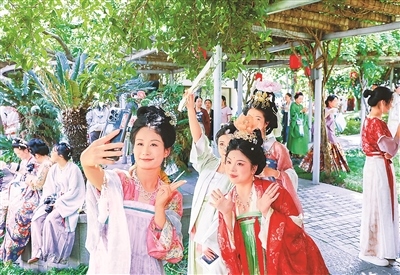 本報(bào)電(博文)近日,2025“國絲漢服月”系列活動(dòng)在中國絲綢博物館開幕。本屆“國絲漢服月”以“天工霓裳”為主題,旨在展現(xiàn)漢服文化的深厚底蘊(yùn)與非遺技藝的獨(dú)特魅力。