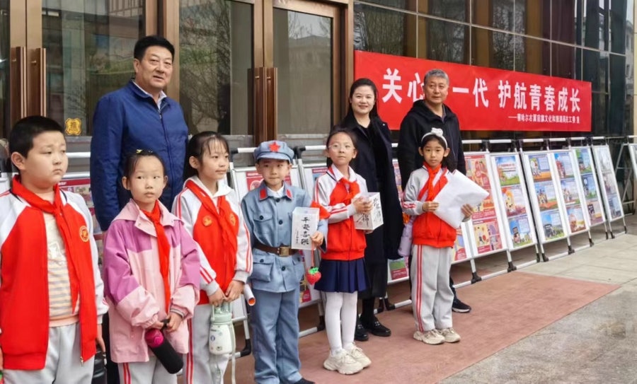 楊鵬與小讀者親切互動,留影紀(jì)念